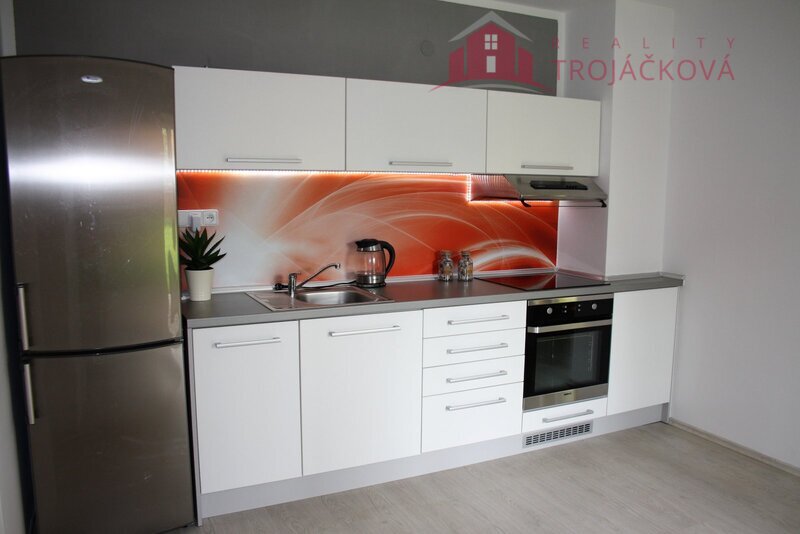 mrazákem, elektrická trouba, varná deska, digestoř. V chodbě botník a
