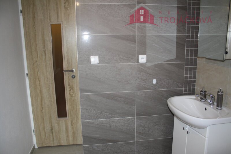 věšáková stěna. Koupelna je s vanou, WC je zvlášť. Dále je zde komora.