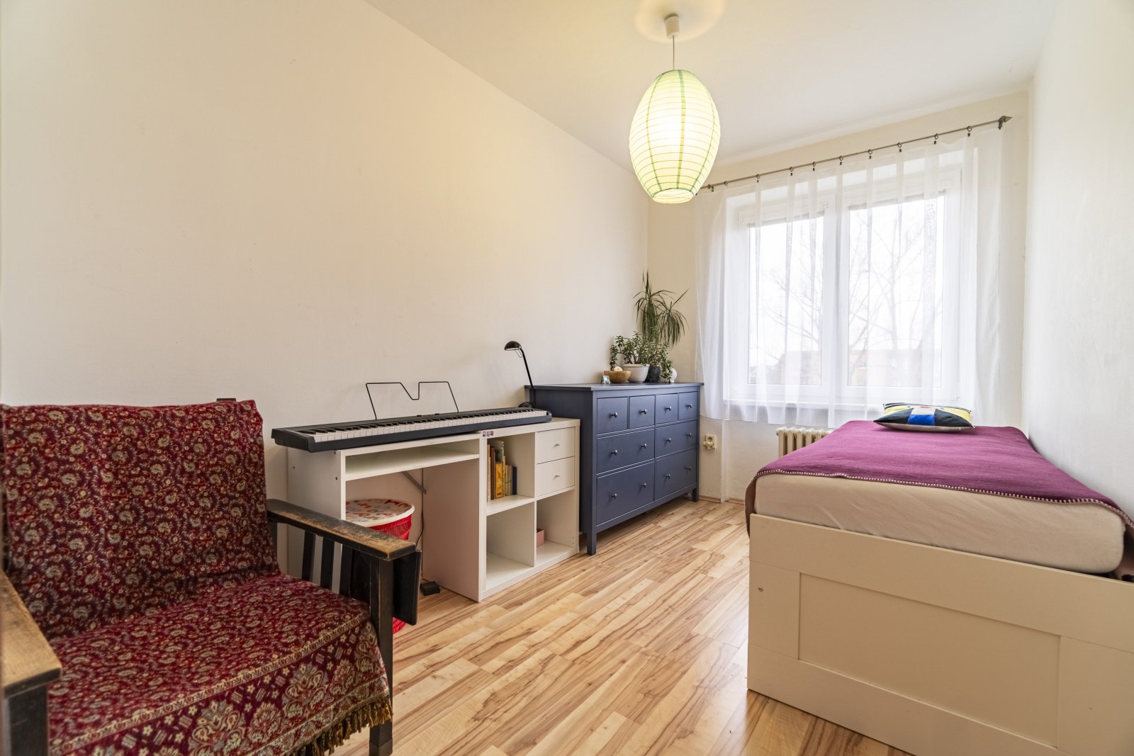 Dispozice bytu je velmi praktická. Po vstupu do bytu vejdeme do prostorné chodby , dále je zde vstup do komory, koupelny a WC a třech neprůchozích pokojů. Jsou zde dvě místnosti využívané, jako ložnice a dětský pokoj. Třetí místnost je obývací pokoj z kterého je vstup na balkón s výhledem do zeleně a navazuje na kuchyň, kde je prostor i pro jídelní část. V kuchyni najdeme zánovní kuchyňskou linku s vestavěnými spotřebiči (myčka, lednice, sporák se sklokeramickou deskou a elektrickou troubou). Součástí koupelny je sprchový kout, umyvadlo se zrcadlem a koupelnová skříňka. WC je samostatné. Byt prošel před nějaký časem rekonstrukcí. Podlahová krytina je plovoucí podlaha a dlažba.