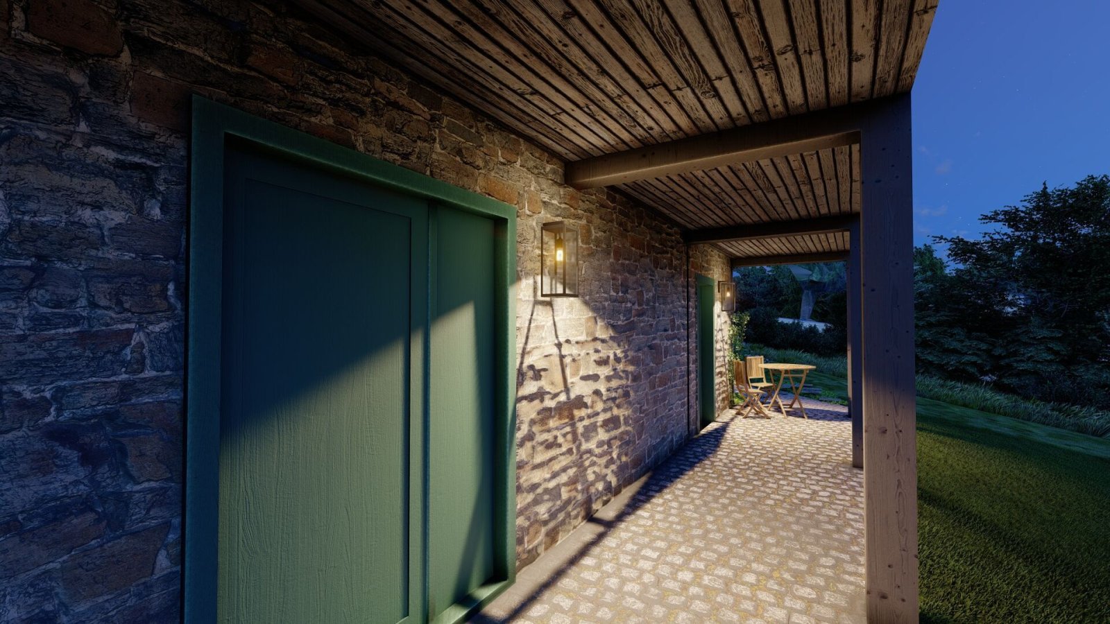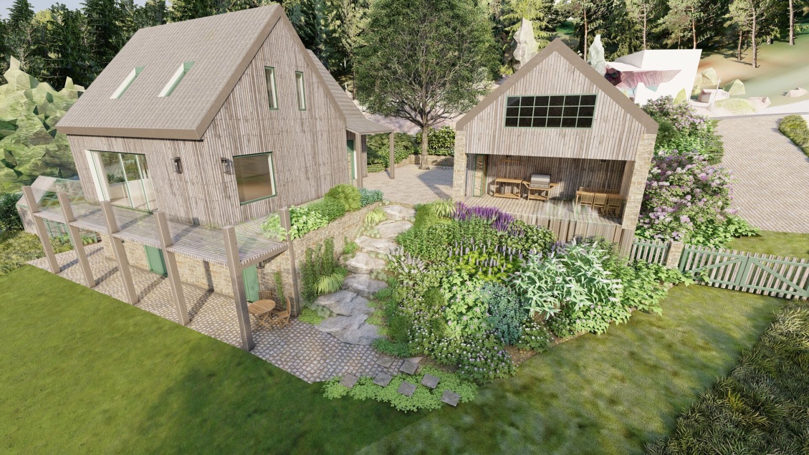 Dům je kompletně dokončený. Zbývá pouze vybrat a instalovat kamenný obklad suterénu, čímž si budoucí majitel může doladit vzhled domu podle vlastních představ. Pozemek je upraven a je vysázena luční tráva. Velikost a orientace pozemku umožňuje realizovat řadu zahradních úprav. Pro představu možných úprav zahrady je připravena studie. Studie představuje i možnou přístavbu „stodoly“ s krytým parkovacím stáním a další krytou terasou. Budoucí podoba zahrady a domu je tak otevřená a může být dokončena budoucími majiteli zcela podle jejich představ a přání.