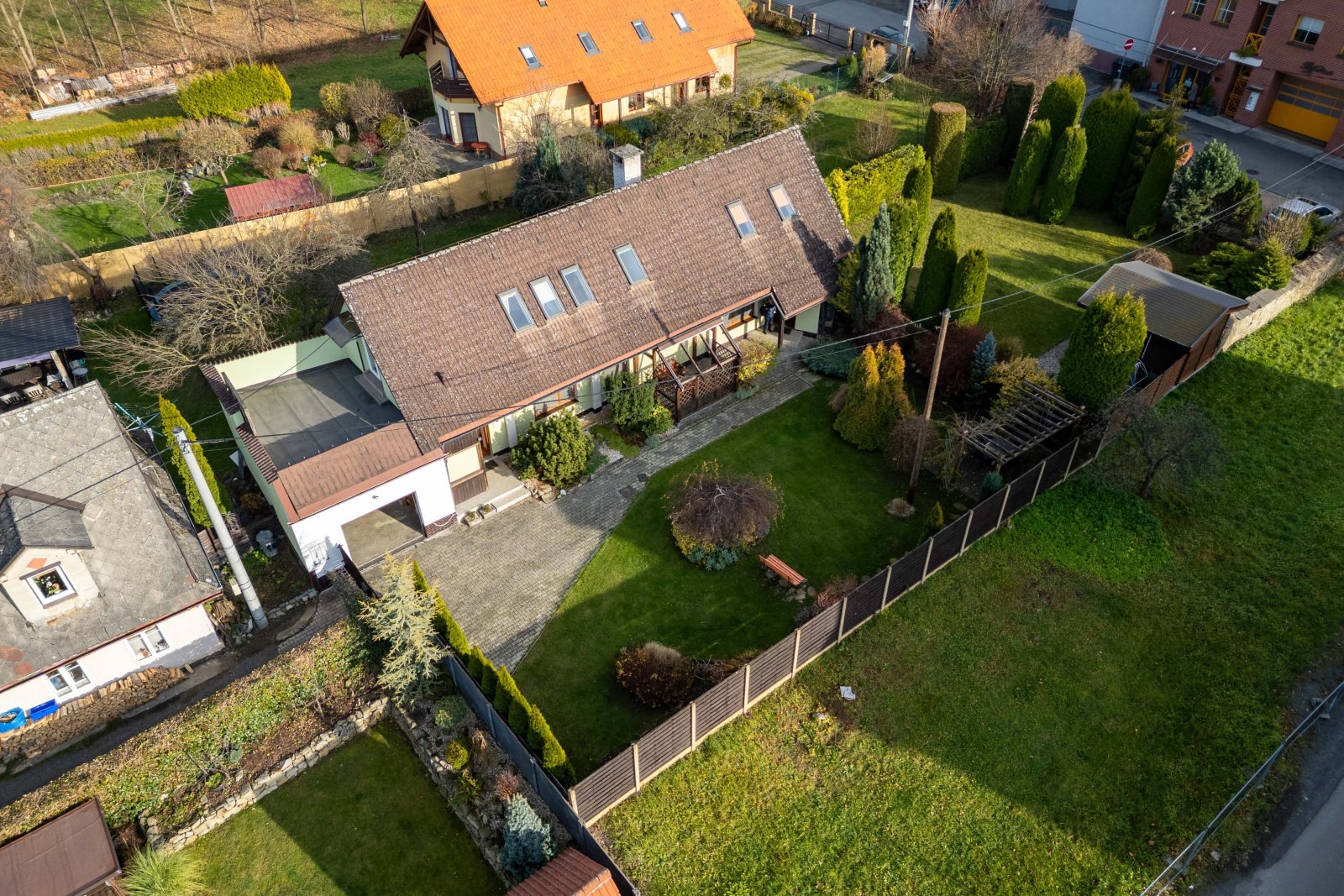 Součástí domu je garáž a na zahradě je možnost příjemného posezení. Možnost využití, jako investiční nemovitost k pronájmu.